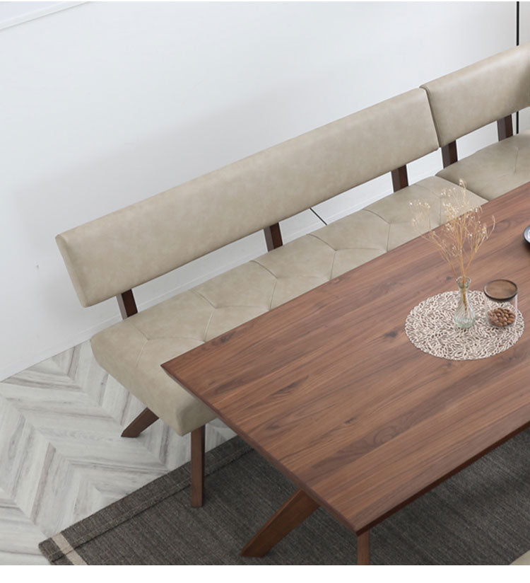 ダイニングチェア 幅150cm 背もたれ付き 座面高47cm 木脚 木製 PVC 食卓椅子 シンプル ナチュラル おしゃれ ウォールナット オーク 長椅子 ソファ リビング ダイニング 椅子 チェア(代引不可)