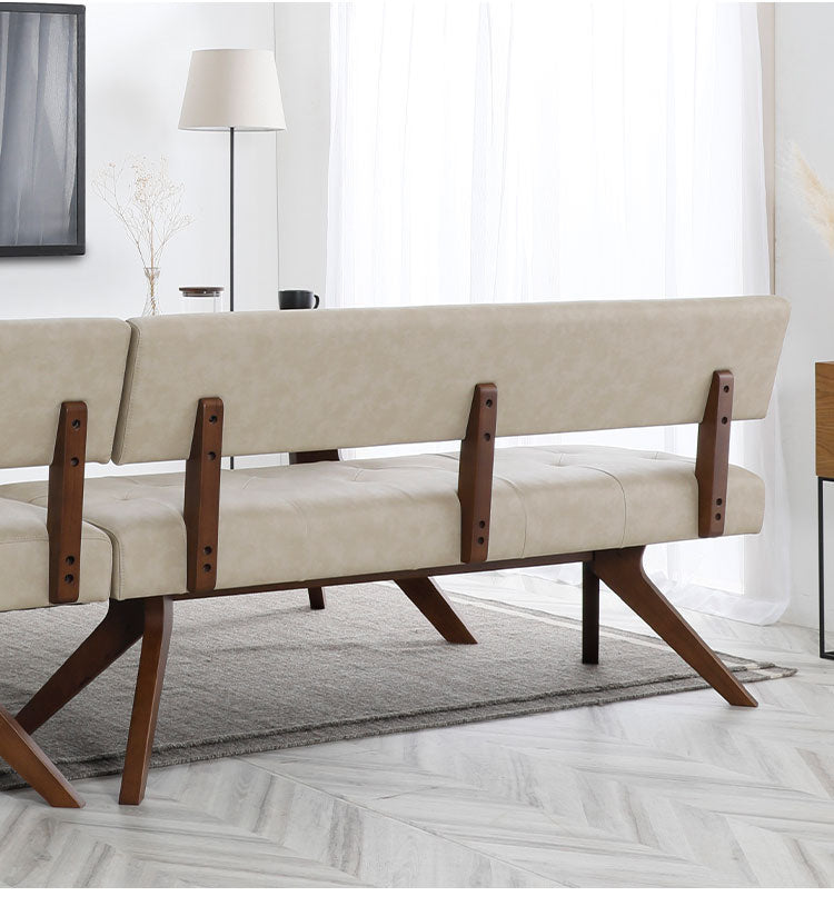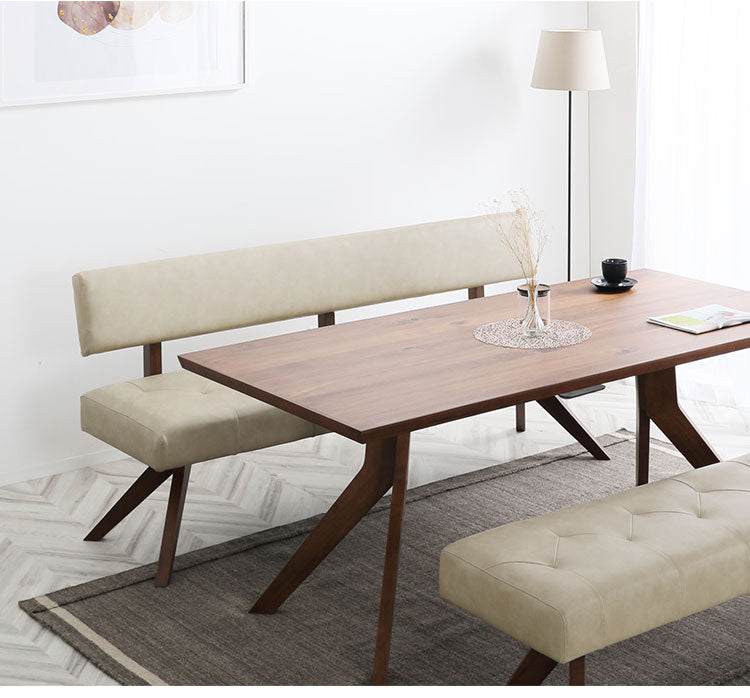 ダイニングチェア 幅180cm 背もたれ付き 座面高47cm 木脚 木製 PVC 食卓椅子 シンプル ナチュラル おしゃれ ウォールナット オーク 長椅子 ソファ リビング ダイニング 椅子 チェア(代引不可)