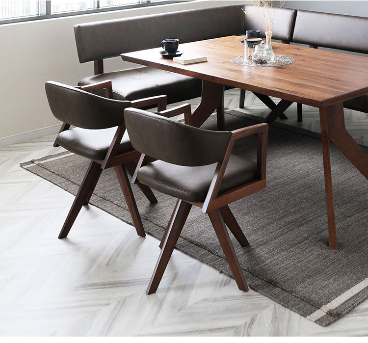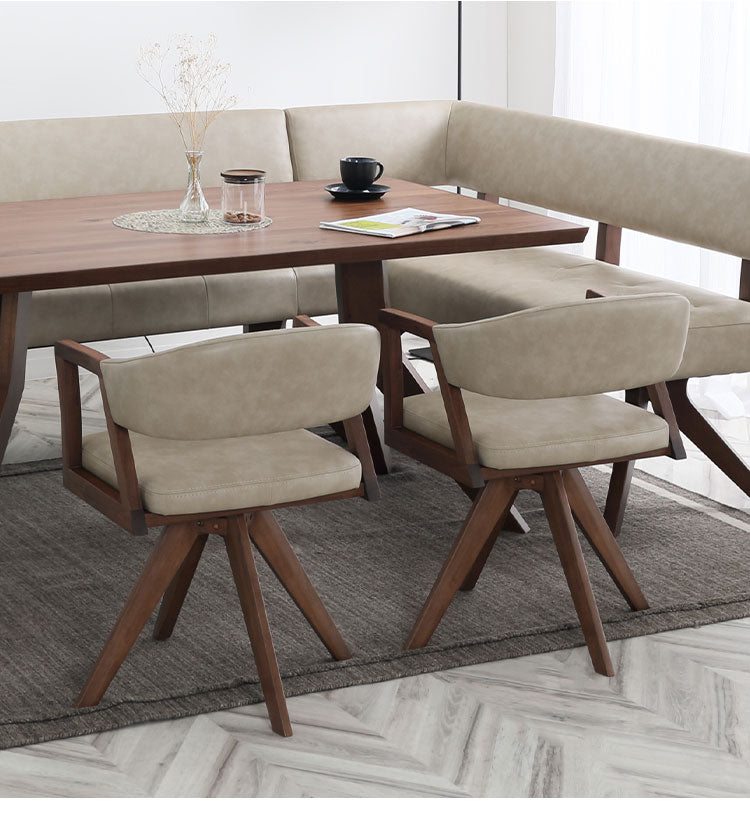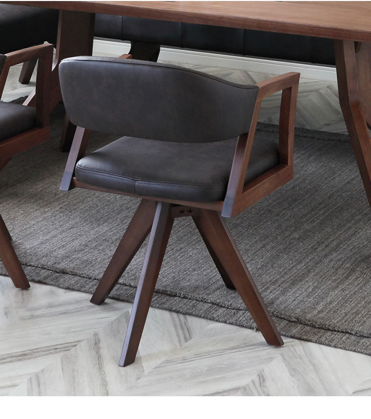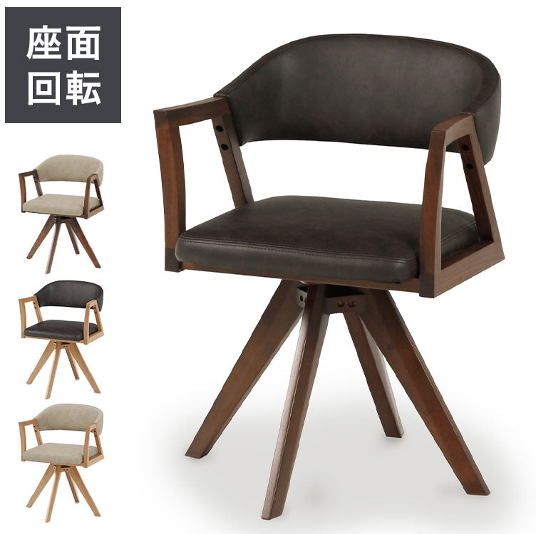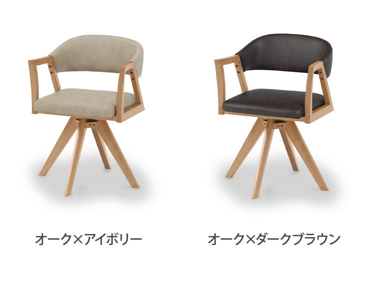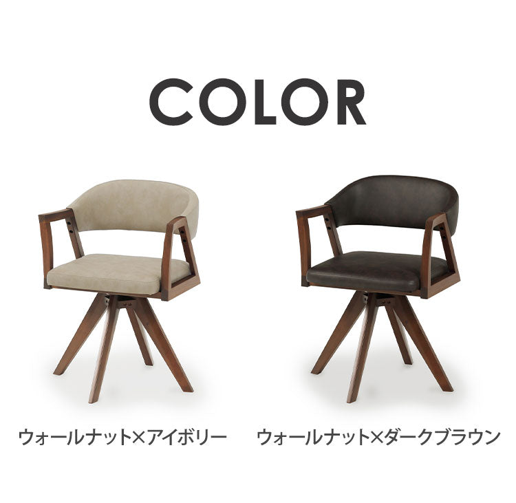 ダイニングチェア 回転チェア 座面高43.5cm 背もたれ付き 肘掛け付き アームチェア 木製 PVC シンプル モダン ナチュラル ウォールナット オーク おしゃれ チェア 椅子 リビング ダイニング(代引不可)