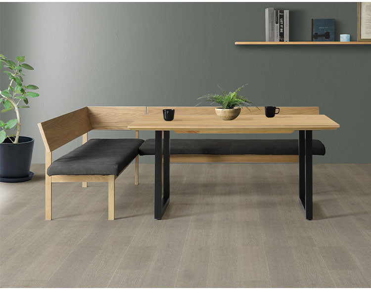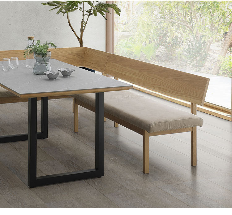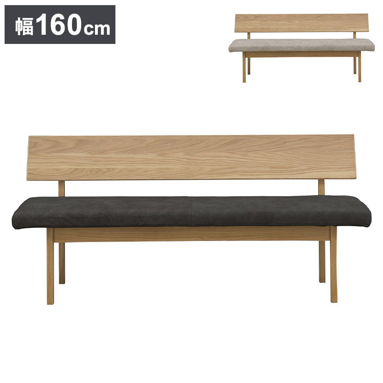 ダイニングチェア 幅160cm 座面高43cm 背もたれ付き 木脚 オーク ファブリック ヴィンテージ風 おしゃれ 長椅子 リビング ダイニング(代引不可)