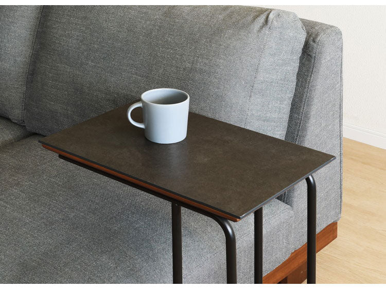 少し高めのサイドテーブルですので、肘の高いソファやベッドフレームの横でも使用していただけます。