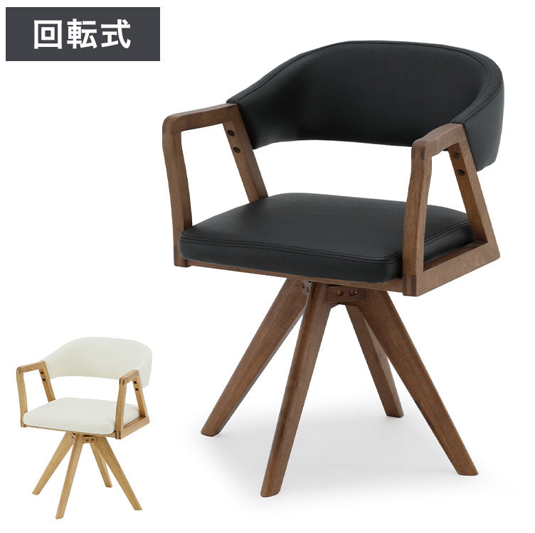 ダイニングチェア 回転チェア 座面高43.5cm 背もたれ付き 肘掛け付き 360度回転 PVCレザー 合成皮革 オーク 木製 北欧 おしゃれ モダン チェア リビング ダイニング(代引不可)