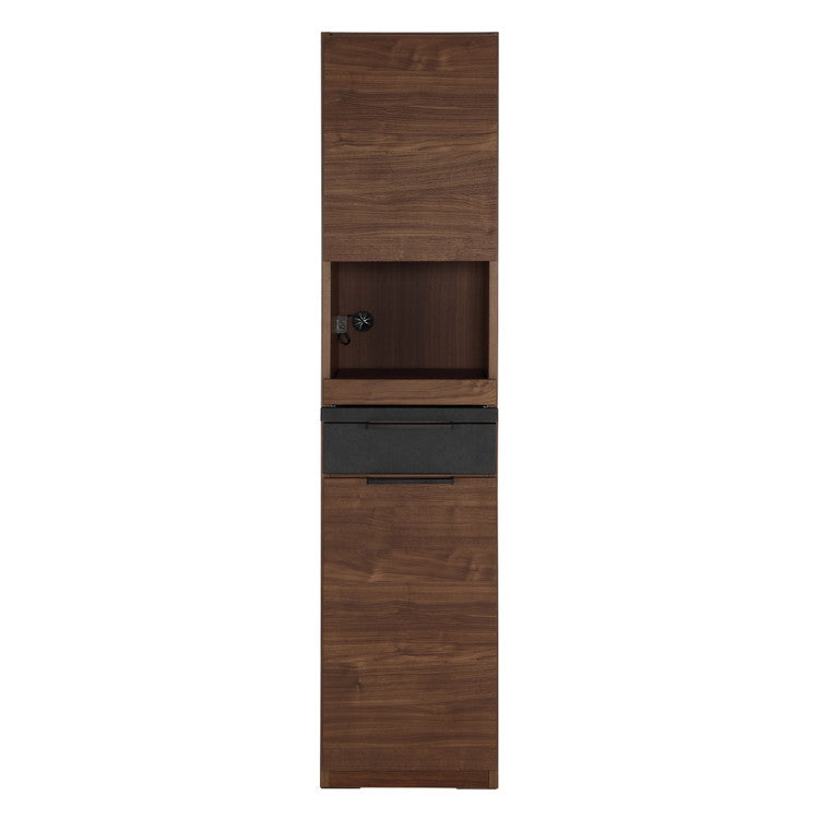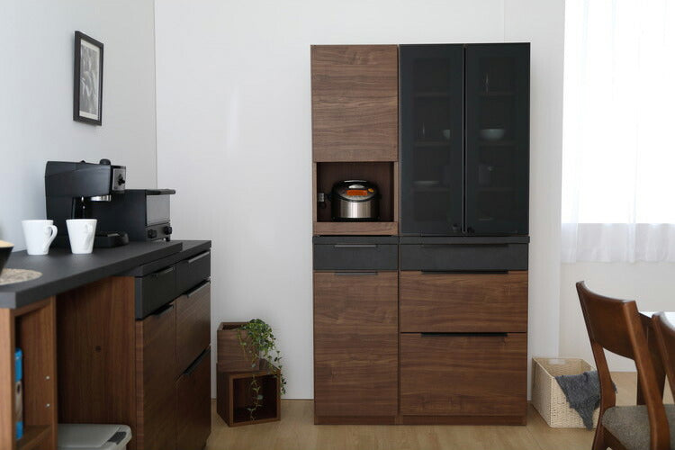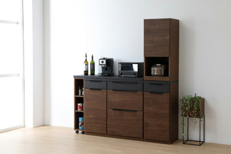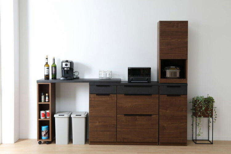 食器棚 キッチンボード 幅40 ストッカー付き 完成品 コンクリート調 スライドレール 1口コンセント付き 木目 木製 レンジ台 カップボード サイドボード おしゃれ(代引不可)