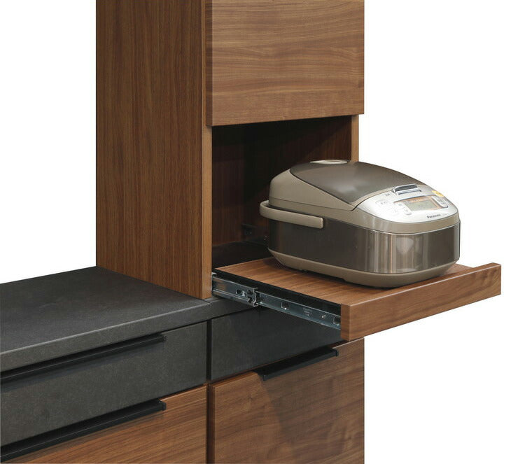 炊飯器などの家具収納スライドテーブルは腰高設定になってますので、腰をかがめず使用できます。