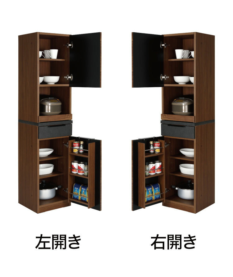 また下台の扉裏にはストッカーがついており調味料等の収納に便利です。