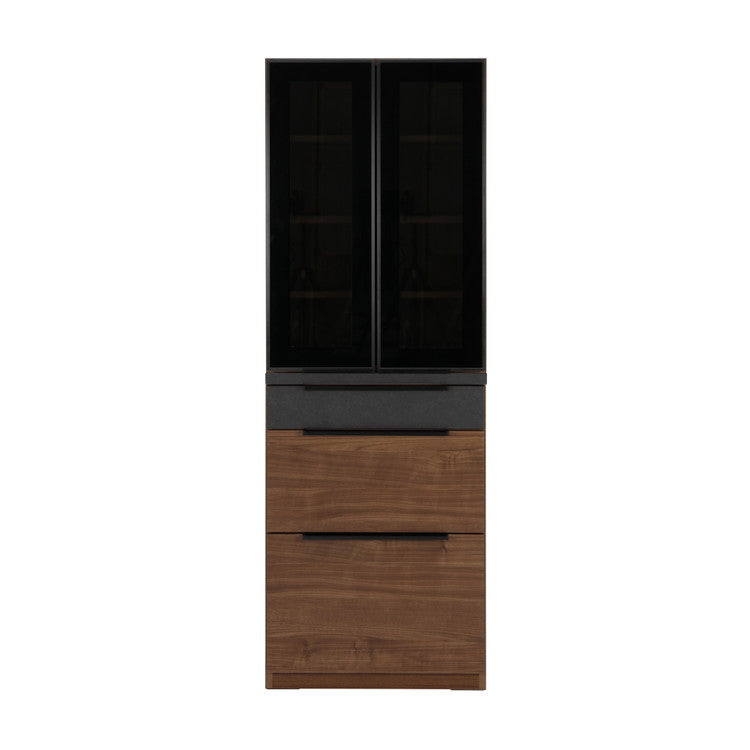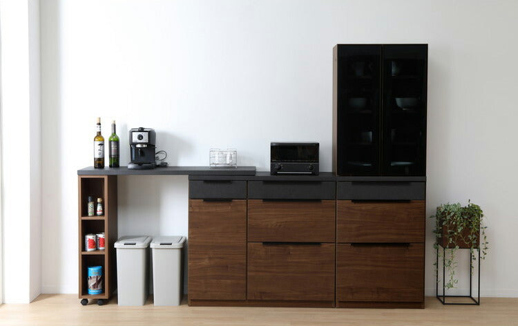 食器棚 キッチンボード 幅60 ブラックガラス 完成品 コンクリート調 スライドレール 1口コンセント付き 木目 木製 レンジ台 カップボード サイドボード おしゃれ(代引不可)