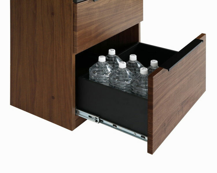 最下段の引き出しはペットボトルなどの収納に便利な深めの設定です。