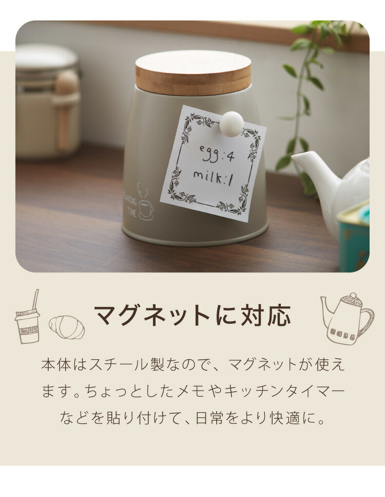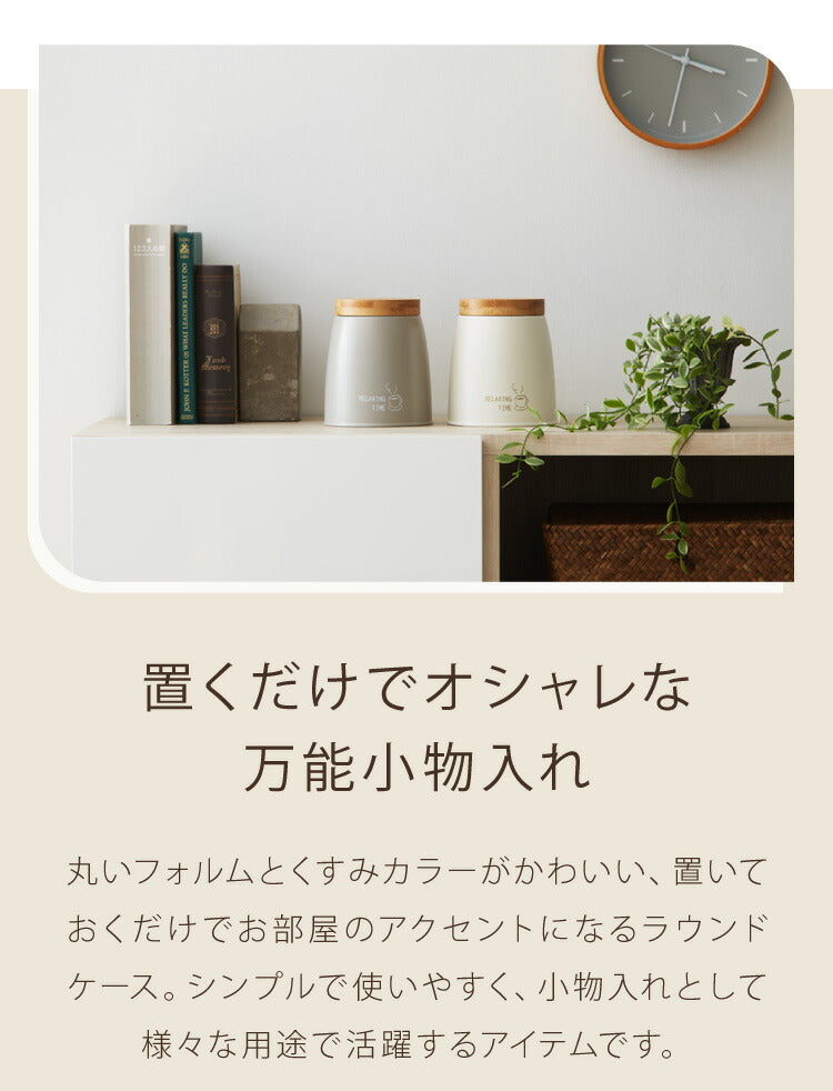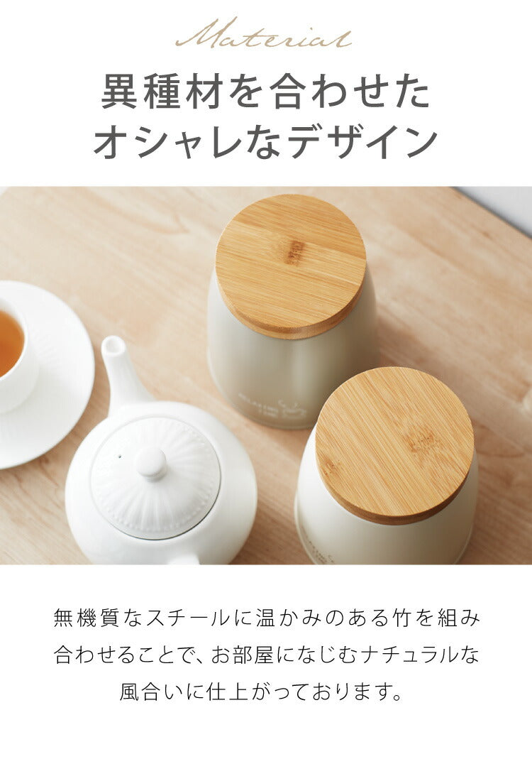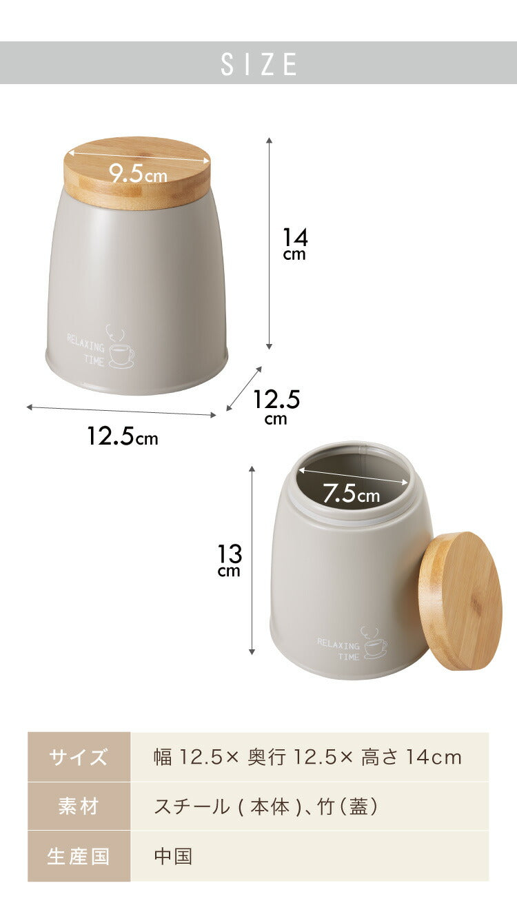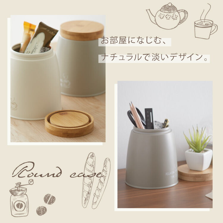 ストックケース 小物入れ スチール 竹素材 フタ付き おしゃれ 北欧 ラウンドケース 直径12.5 高さ14 コーヒー 紅茶 ストック 保存容器 収納 ストッカー 卓上整理