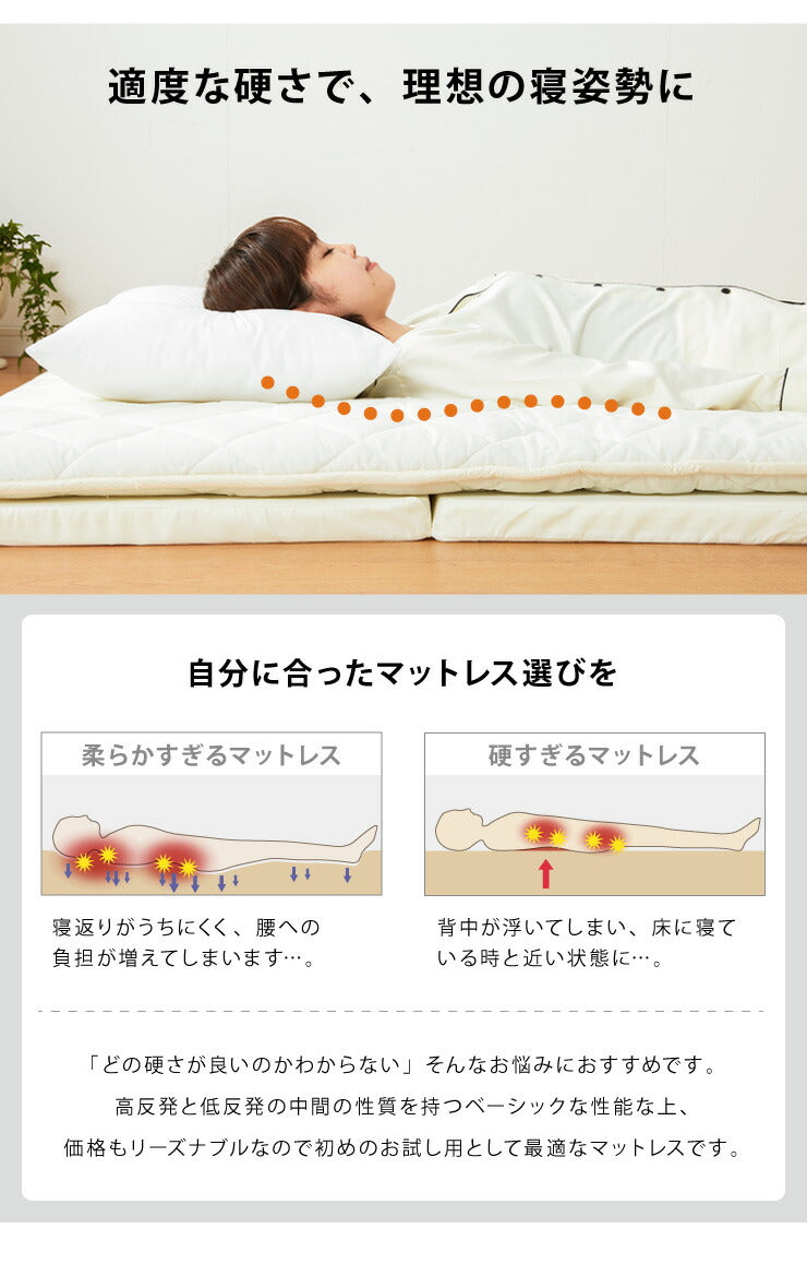 日本製 四つ折り お試しマットレス シングル 厚さ4cm 90N マットレス 中反発 ウレタン おりたたみ 腰痛 折りたたみマットレス かたさふつう (代引不可)