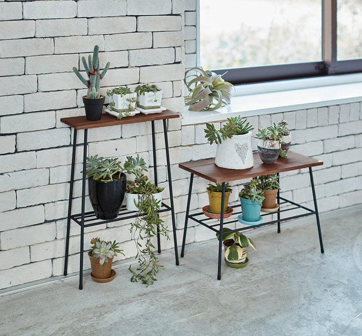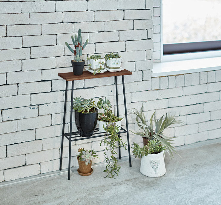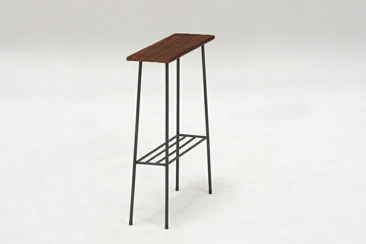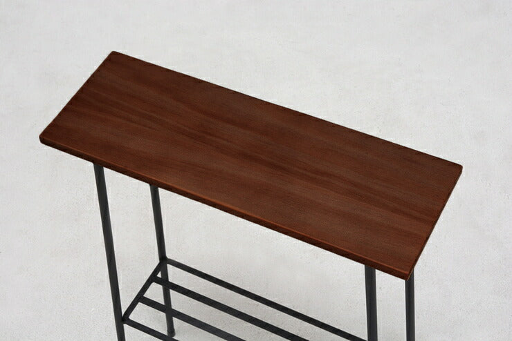 木材と細めのアイアンを組み合わせた薄型ラック。壁際のインテリアやスペースを確保しづらいトイレなどに最適。