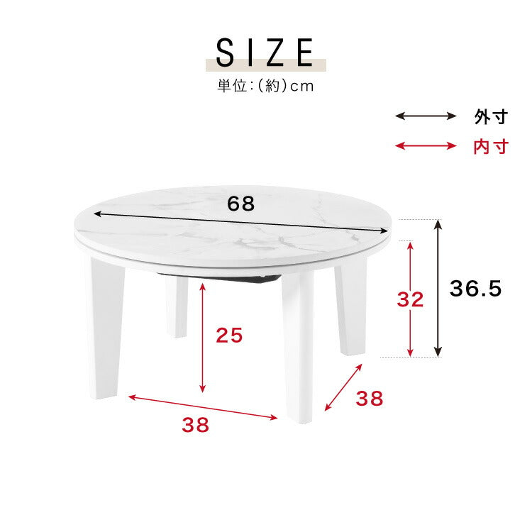 こたつテーブル 円形 大理石調 幅68 丸 こたつ コタツ 炬燵 北欧 白 ホワイト センターテーブル ローテーブル 机 可愛い かわいい おしゃれ 韓国インテリア モノトーン(代引不可)