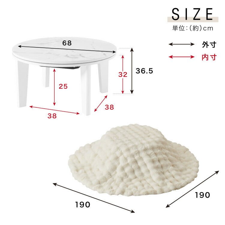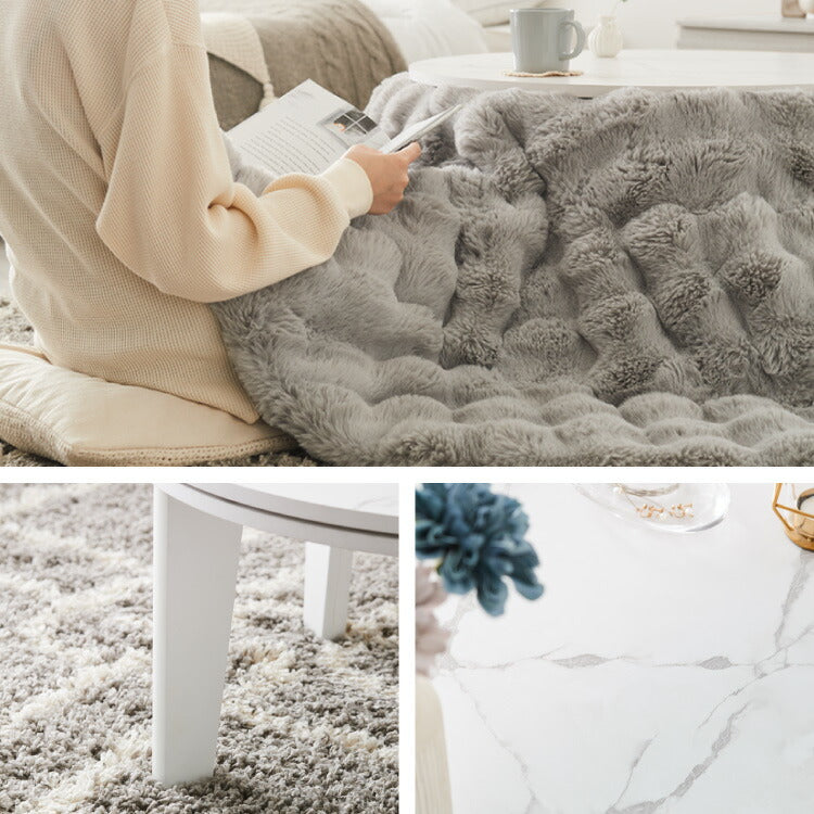 こたつテーブル もこもこ布団 2点セット 円形 大理石調 幅68 丸 こたつ コタツ 炬燵 北欧 白 ホワイト センターテーブル ローテーブル 机 可愛い かわいい おしゃれ 韓国インテリア モノトーン(代引不可)