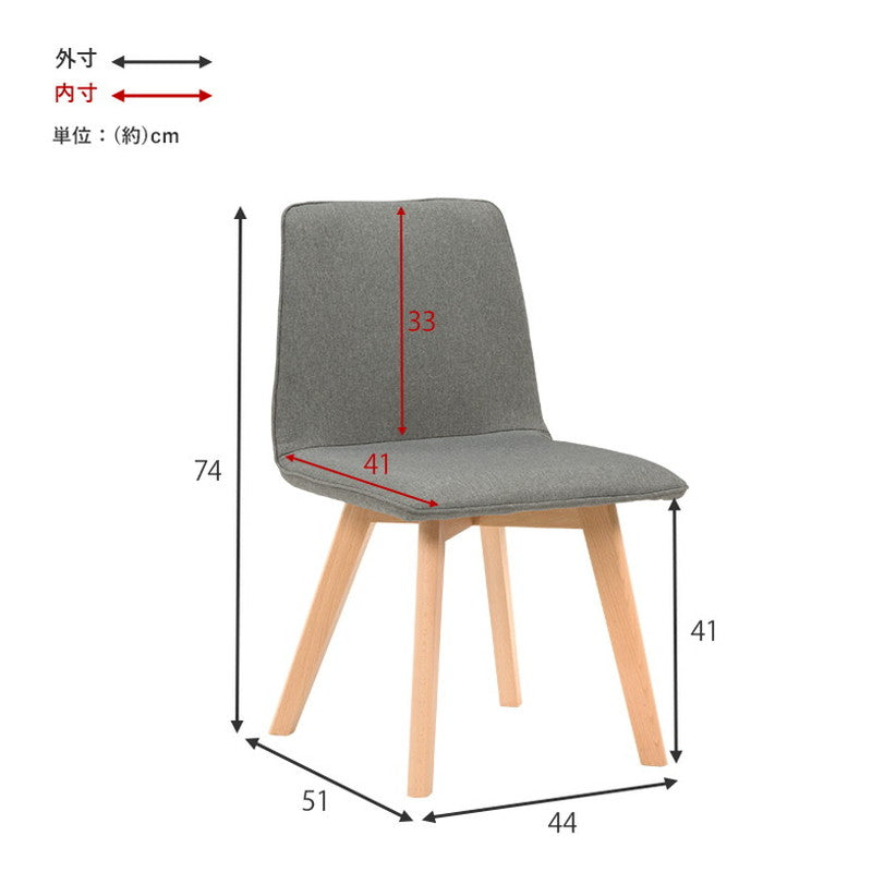 天然木の脚、丸みを帯びたシルエットが北欧を連想させる、可愛らしいデザインのダイニングチェア。