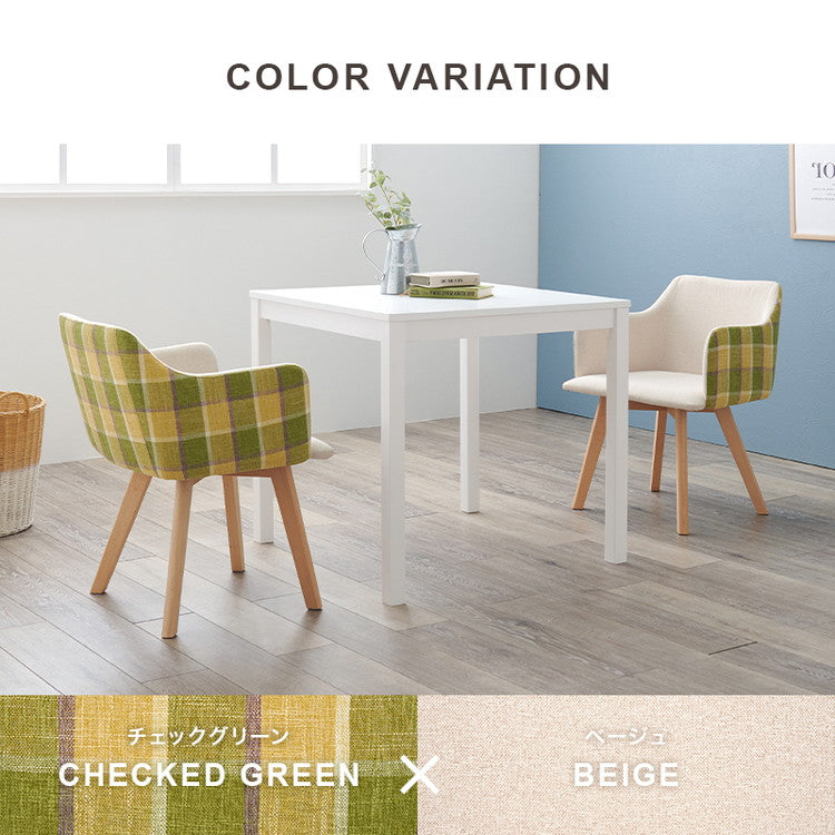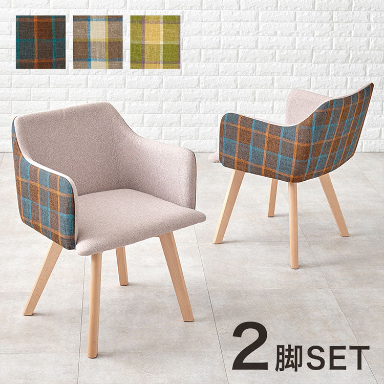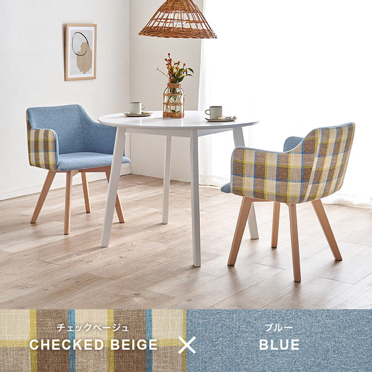 天然木の脚とチェック柄の組み合わせがおしゃれなダイニングチェア。肘付きで作業用としても活用できます。