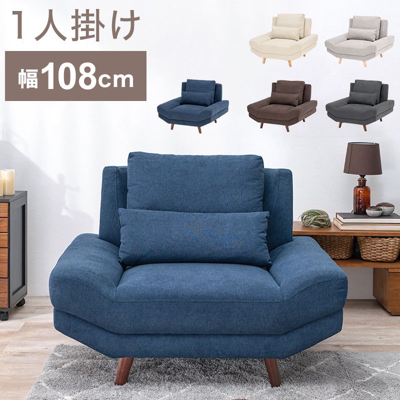アームレスソファ あぐらソファ ゆったり座面 クッション付き 1人掛け 肘無し 1P 幅108 北欧 おしゃれ 天然木脚 ローソファー ファブリック(代引不可)