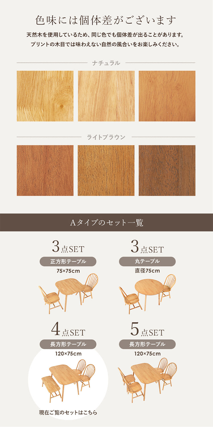 主材:天然木、天板:(ナチュラル、ライトブラウン)天然木化粧繊維板・(ホワイト)繊維板