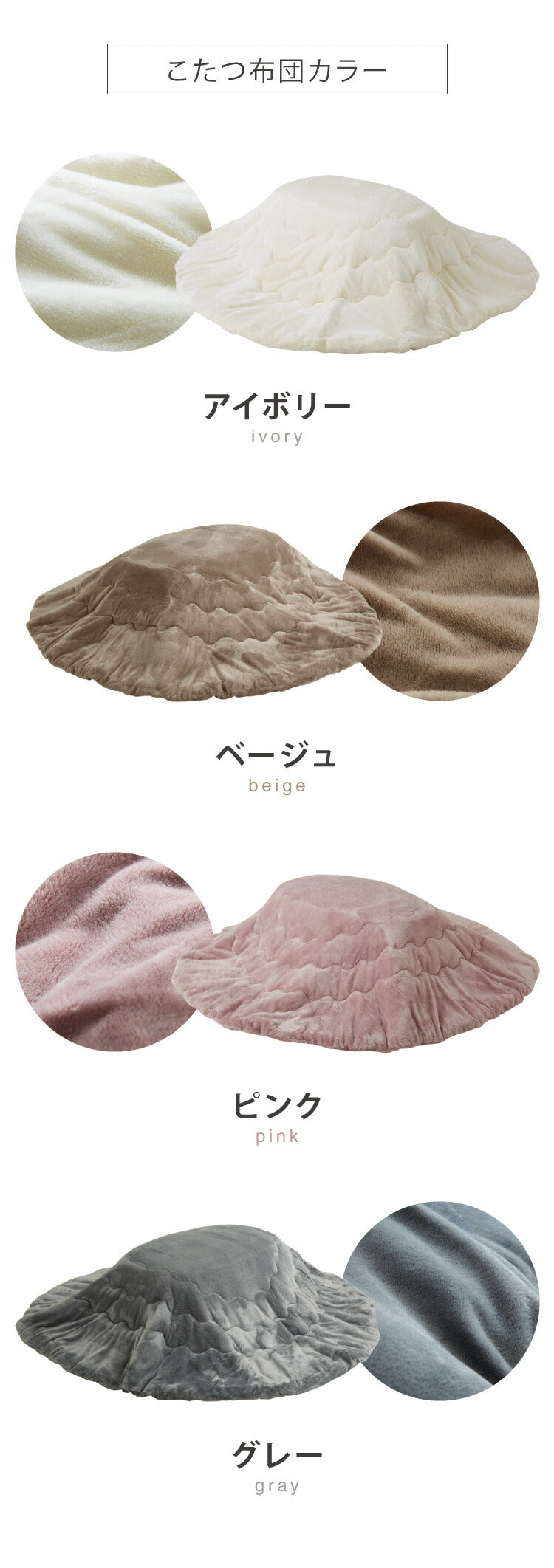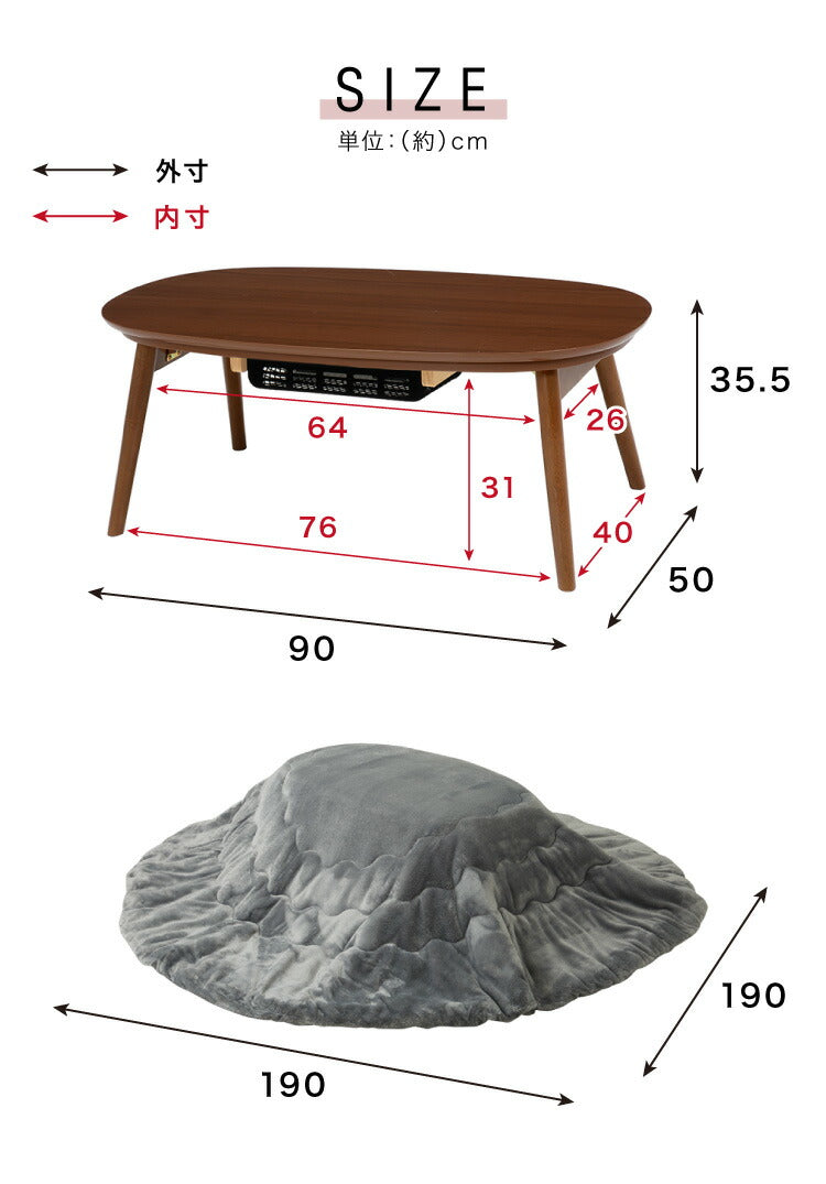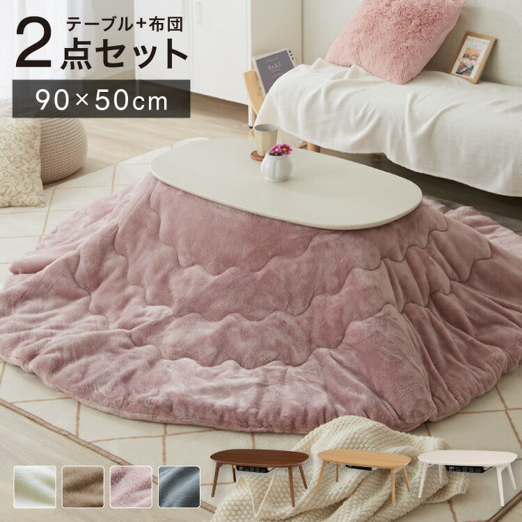 楕円形天板のこたつテーブル+メレンゲタッチの布団セット。