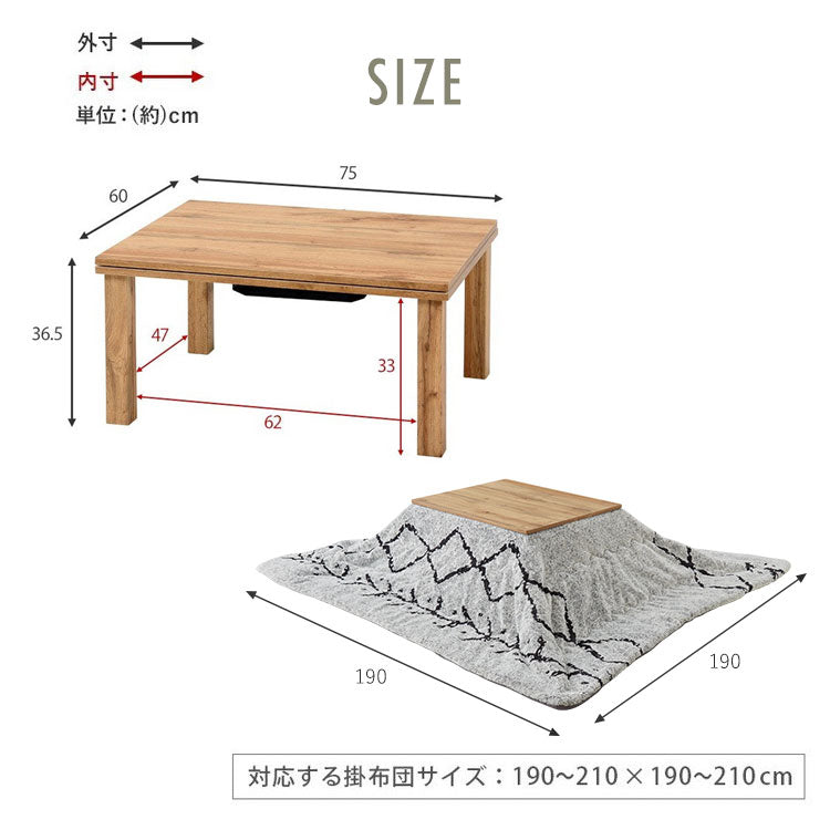 カジュアルこたつ 布団付き 2点セット テーブル+掛け布団 75×60 炬燵 コタツ 北欧 木目デザイン ベニワレン風 ナチュラル こたつ布団 センターテーブル ローテーブル おしゃれ(代引不可)
