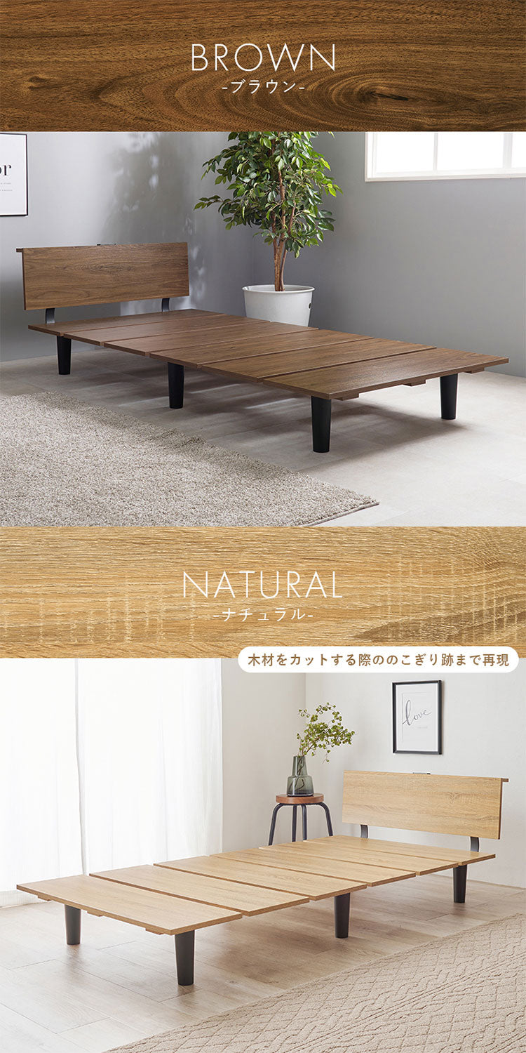 シンプルな木目のパネルに黒い脚がスタイリッシュなデザイン性の高いベッド。独立したバネが体型に合わせて沈みこむポケットコイルマットレスセット