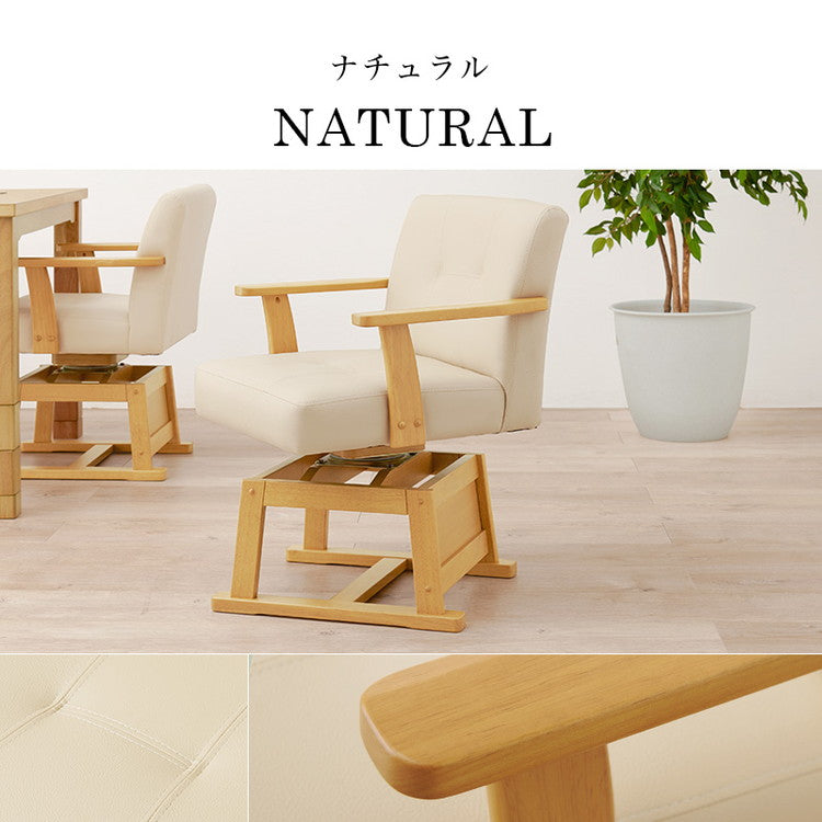 高さ調節が可能な回転式ダイニングチェア。座面下に前板があるので、コタツ庫内の熱が逃げにくいです