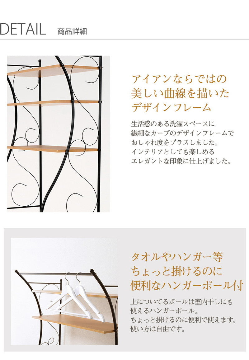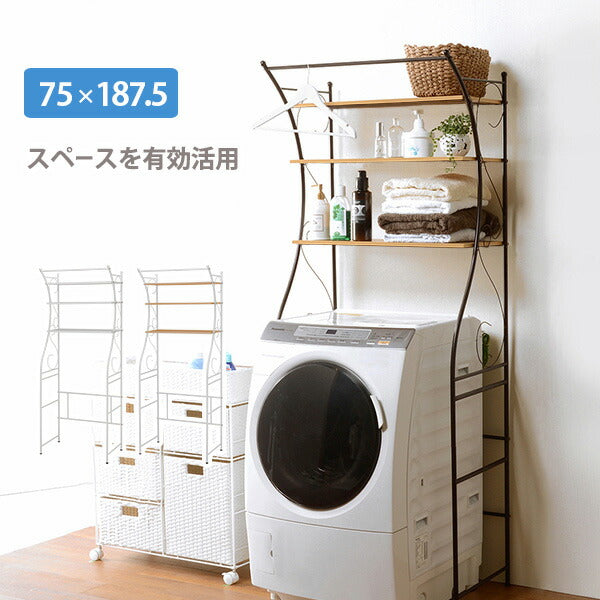洗濯機ラック 幅75 ランドリーラック 洗濯機上ラック 姫系 かわいい 曲線 エレガント ランドリー収納 棚 新生活 おしゃれ(代引不可)