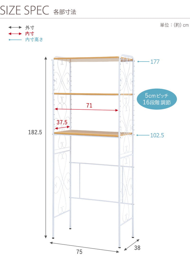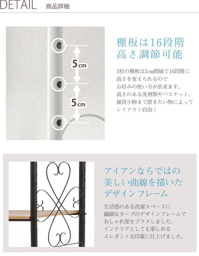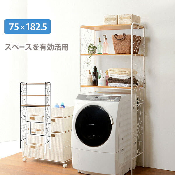 洗濯機ラック 幅75 ランドリーラック 洗濯機上ラック 姫系 かわいい エレガント ランドリー収納 棚 新生活 おしゃれ(代引不可)