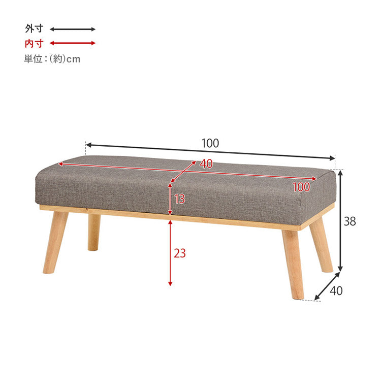 ダイニングベンチ 幅100 ゆったりロータイプ設計 リビングダイニング 椅子 イス チェア ファブリック 天然木脚 北欧 シンプル ナチュラル おしゃれ(代引不可)