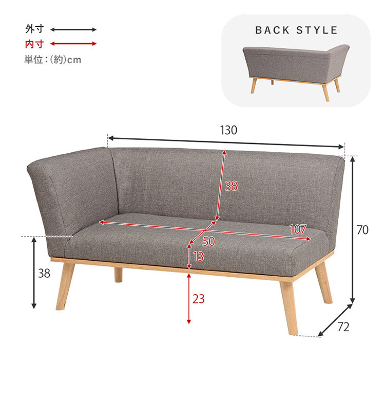 片肘ダイニングソファ 左肘2P 幅130 ゆったりロータイプ設計 リビングダイニング 肘付き ファブリック 片肘ソファ 天然木脚 ローソファ 北欧 シンプル ナチュラル おしゃれ(代引不可)