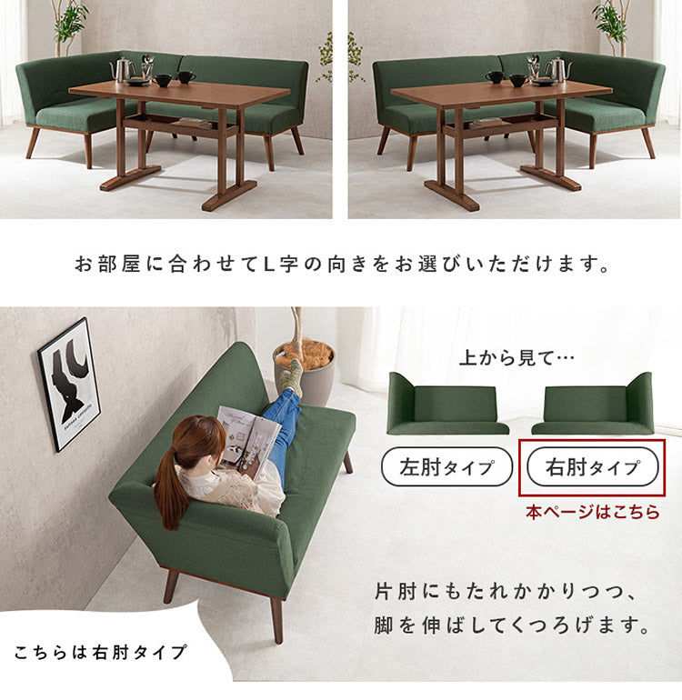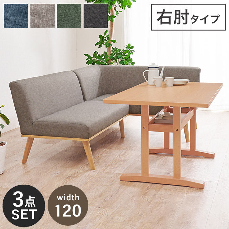 ダイニングコーナー3点セット 幅120 右肘 ゆったりロータイプ設計 リビングダイニング ダイニングテーブル ソファ ダイニングセット 北欧 シンプル ナチュラル おしゃれ(代引不可)