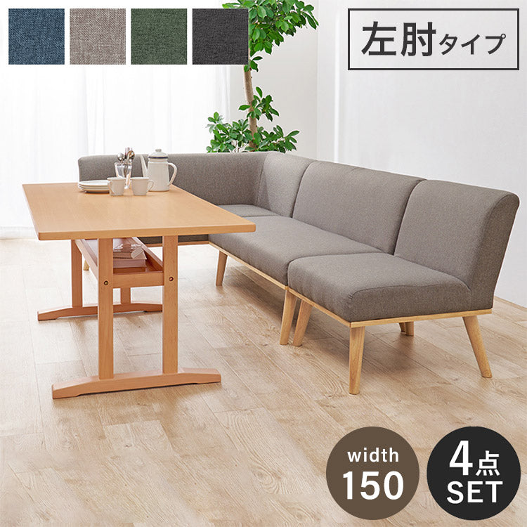 ダイニングコーナー4点セット 幅150 左肘 ゆったりロータイプ設計 リビングダイニング ダイニングテーブル ソファ ダイニングセット 北欧 シンプル ナチュラル おしゃれ(代引不可)
