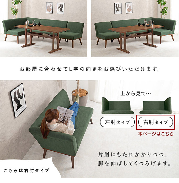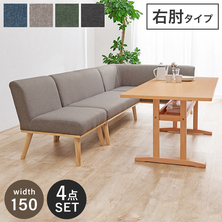 ダイニングコーナー4点セット 幅150 右肘 ゆったりロータイプ設計 リビングダイニング ダイニングテーブル ソファ ダイニングセット 北欧 シンプル ナチュラル おしゃれ(代引不可)