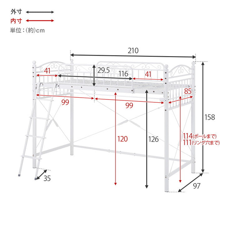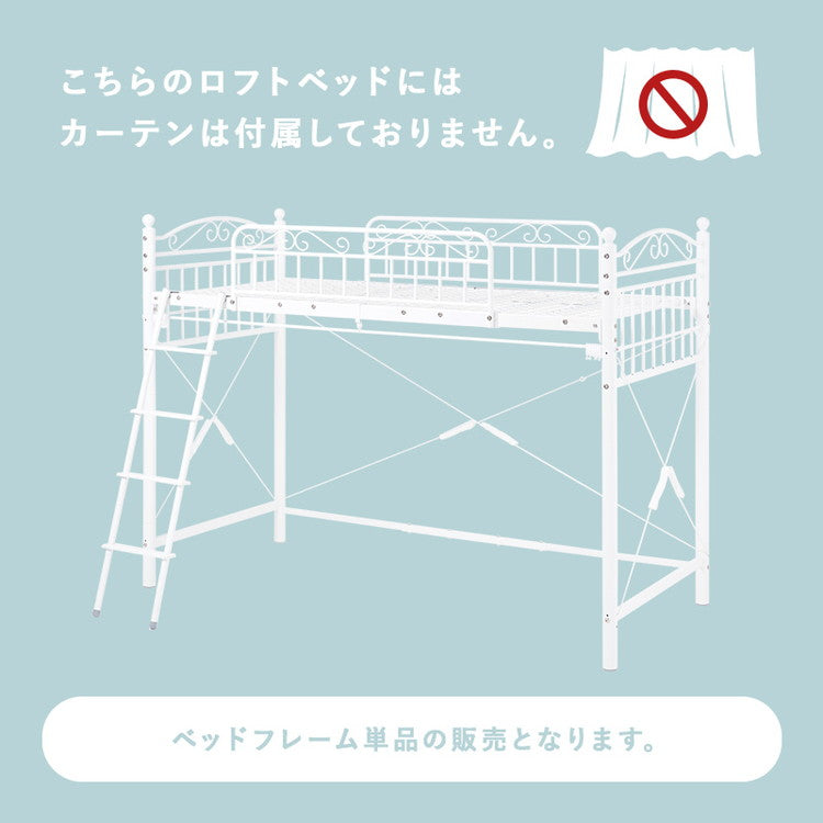 まるでプリンセスが住むお城のようなエレガントなデザインのパイプロフトベッドです。市販のカーテンを取り付けて使え、ひとりでゆったり過ごせる隠れ家のような空間を作れるミドルタイプ。