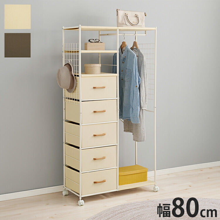 棚付きハンガーラック 幅80cm スリム 引出し 5杯 コートハンガー スチールラック ハンガーラック 洋服掛け 引き出し チェスト 棚 省スペース おしゃれ(代引不可)