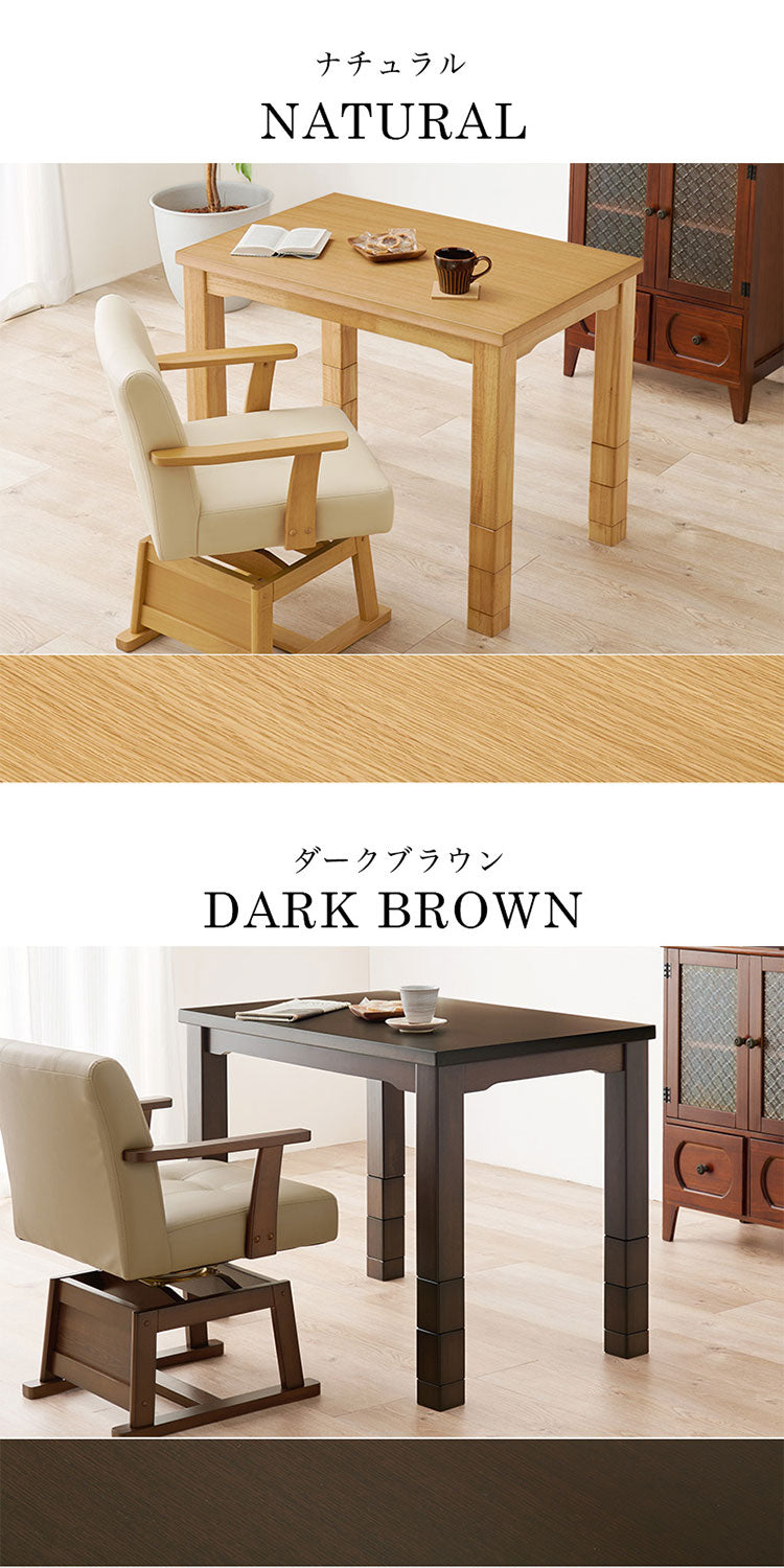 高さが6段階に変更できるこたつテーブル。ダイニングチェア、ソファ、座椅子などお使いの家具に合わせた高さに変更できます。
