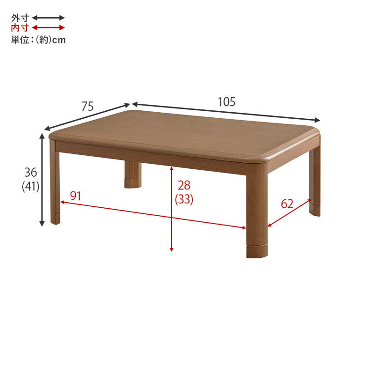 こたつテーブル 幅105 木目調 リビングこたつ 角丸 高さ調節 こたつテーブル センターテーブル リビングテーブル 和室 洋室 節電 おしゃれ(代引不可)