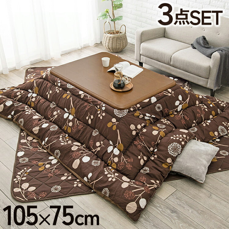 こたつテーブル 布団付き 3点セット 幅105 木目調 和室・洋室に合わせやすい リビングこたつ 掛け布団 敷布団 カーペット こたつ布団 節電 おしゃれ(代引不可)