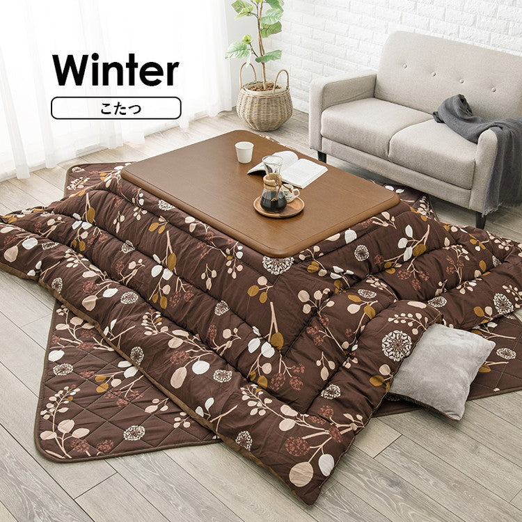 落ち着いた色味の掛け布団、敷布団を合わせたこたつセット。シンプルでお部屋のインテリアに合わせやすいデザインです。
