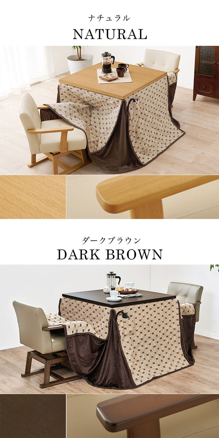 ダイニングこたつ4点セット テーブル+布団+チェア2脚 80×80 高さ調節6段階 継脚付き シェニール織 ダイニングテーブル ダイニングセット こたつ テーブル 北欧 和モダン おしゃれ(代引不可)