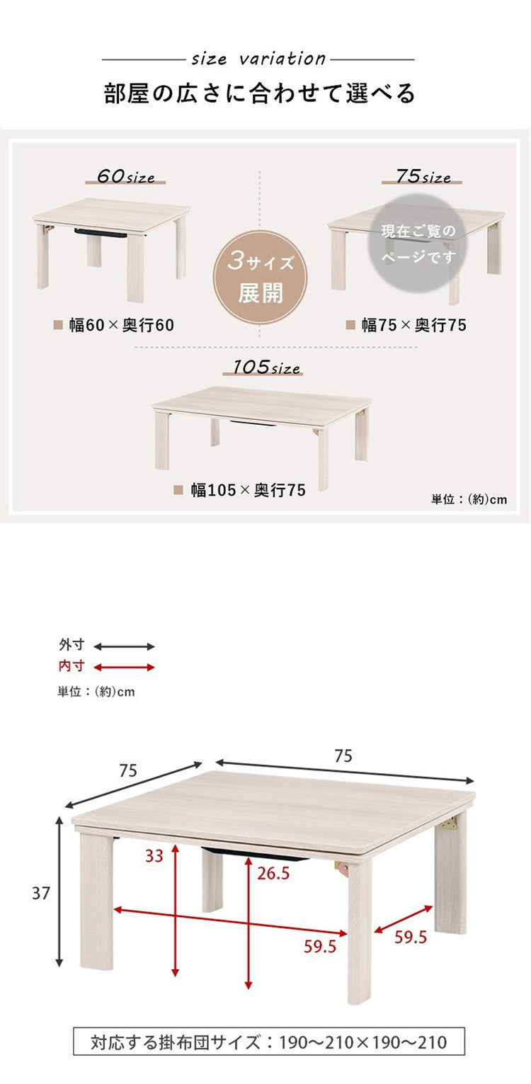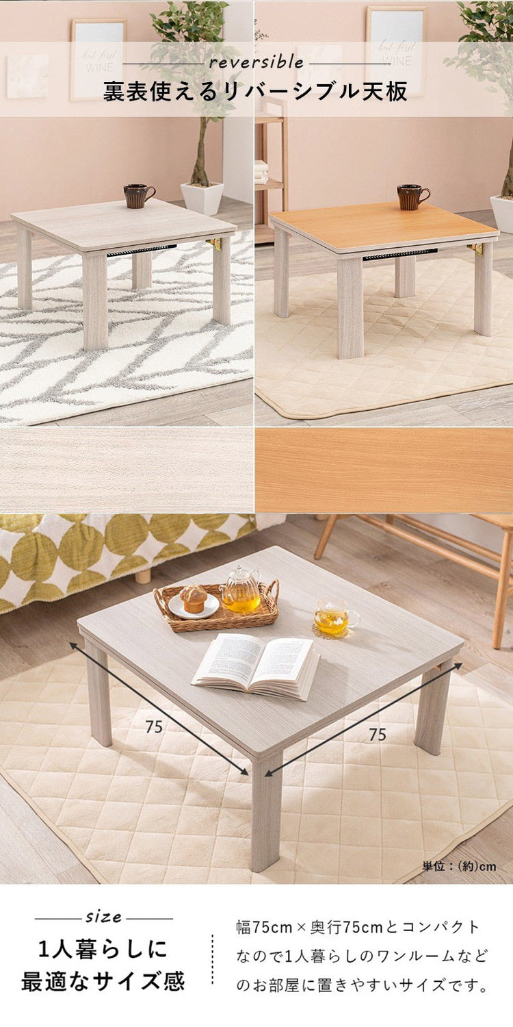 こたつテーブル 75×75 折りたたみ リバーシブル天板 折脚 かわいい おしゃれ カジュアルこたつ 萩原 KOT-7350-75 コタツ 炬燵 暖房 300W センターテーブル(代引不可)