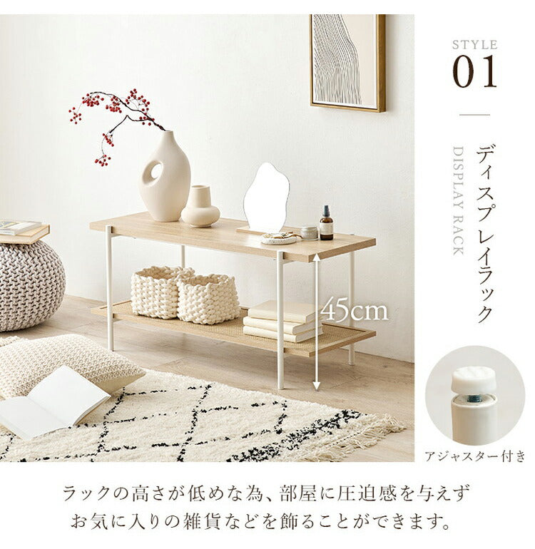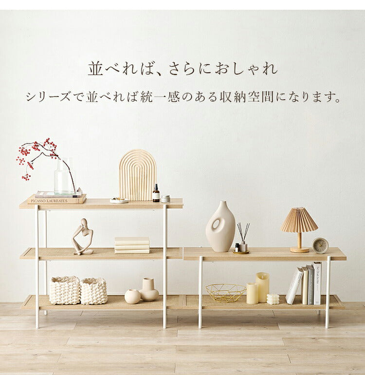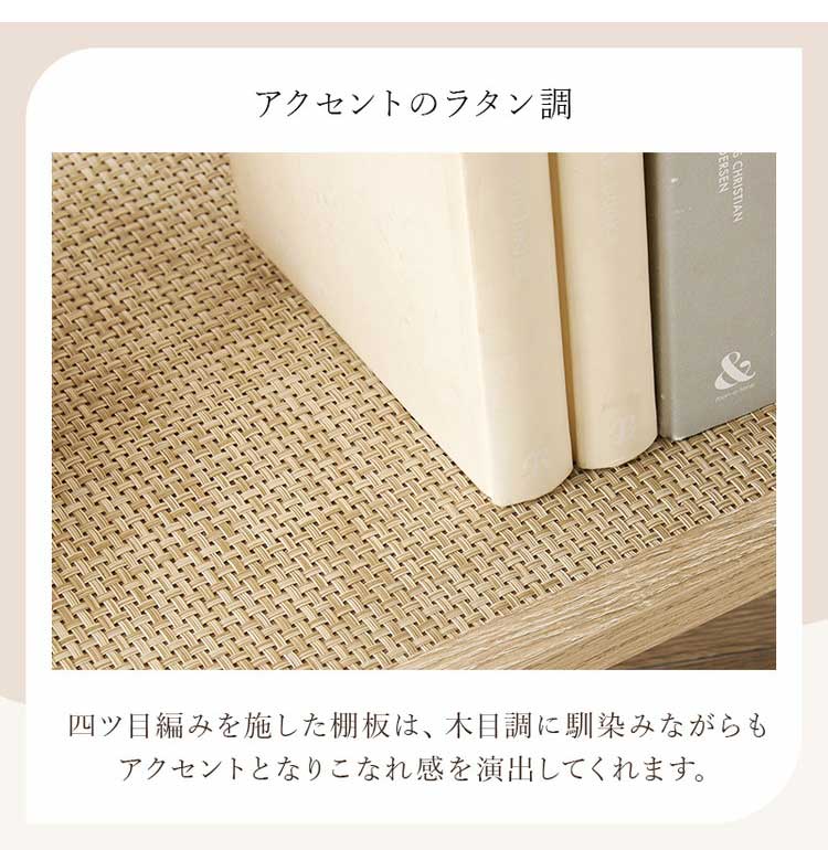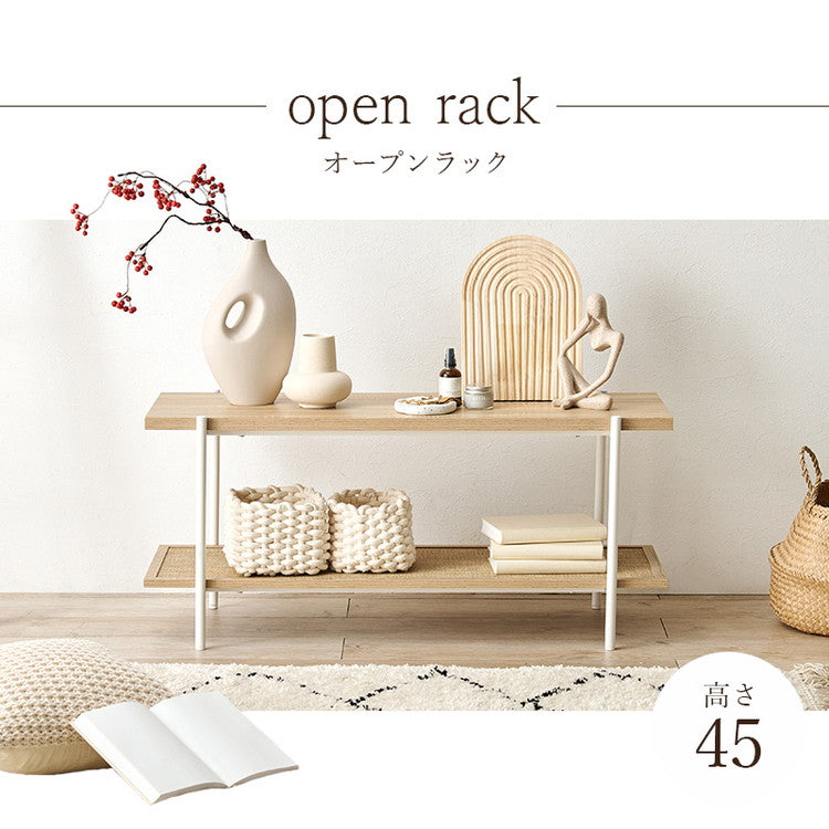 こなれ感がおしゃれなラタン調のオープンラック。
