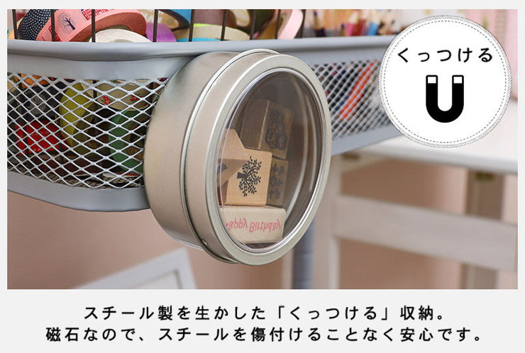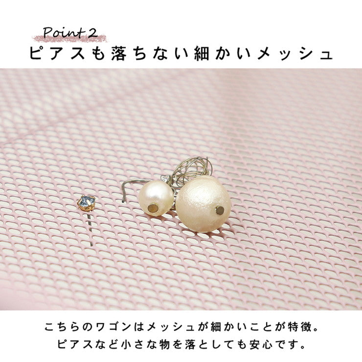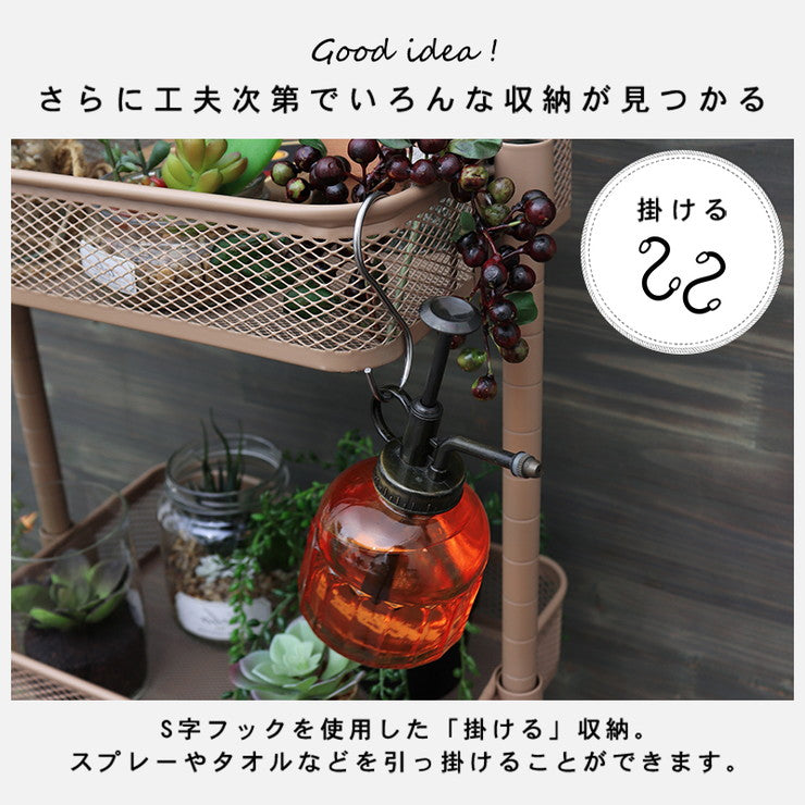 かごの高さが変えられる、物が落ちにくい細かいメッシュのマルチワゴンです。