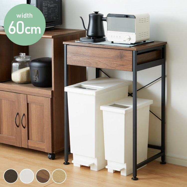 ゴミ箱上ラック 幅60cm 引出し付き 2分別タイプ ごみ箱上を有効活用 省スペース キッチンラック 作業台 作業スペース ごみ箱上ラック ゴミ箱上収納 ゴミ箱ラック ごみ箱ラック キッチン収納 スチール(代引不可)