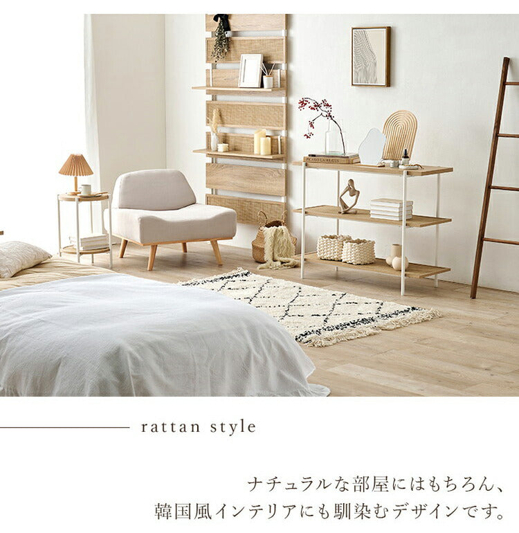 こなれ感がおしゃれなラタン調のオープンラックサイドテーブル。