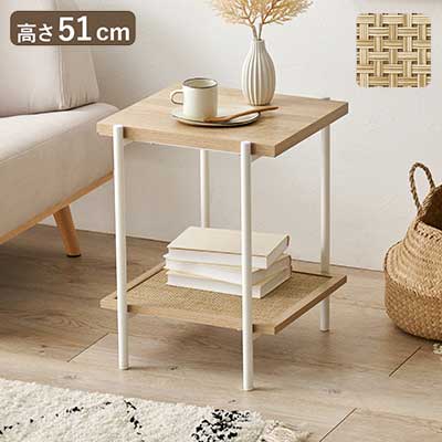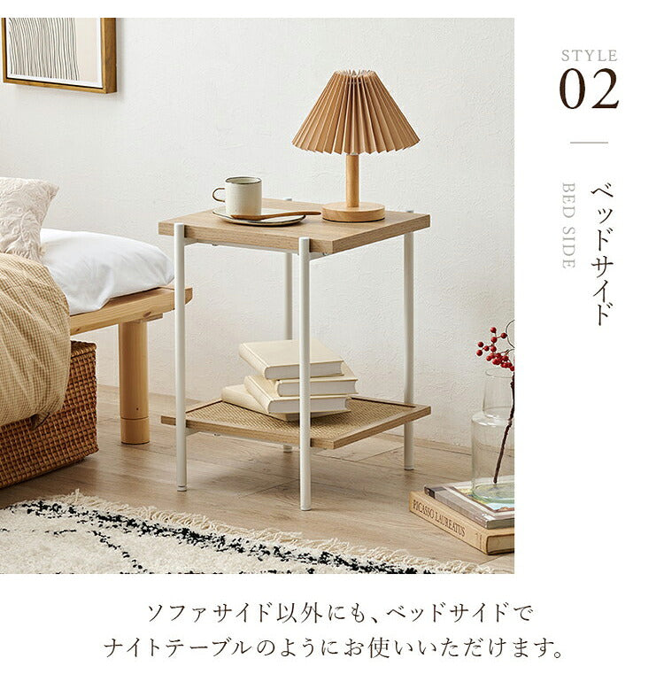 こなれ感がおしゃれなラタン調のオープンラックサイドテーブル。