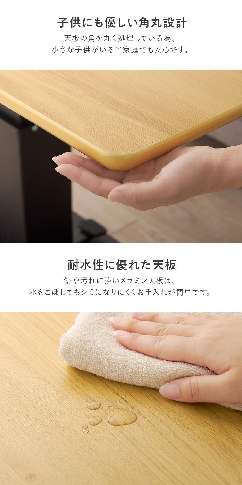 「くつろぐ」「食事する」を1台でかなえ、リビングダイニングをゆとりのある空間に。テーブルは体格や好みに合わせて天板高さを無段階で昇降できます。