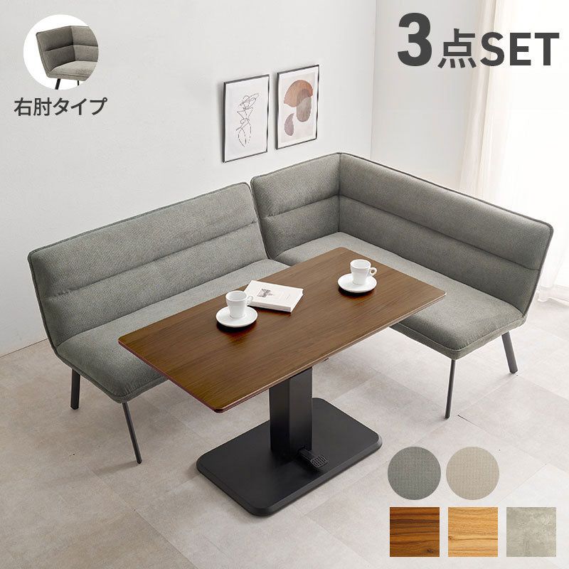 ソファダイニング3点セット 右肘タイプ ダイニングソファ+昇降式テーブル ダイニングテーブル ダイニングソファ 昇降テーブル ダイニングテーブル ソファダイニング(代引不可)