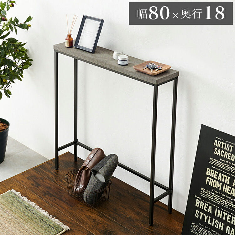 コンクリート調 コンソールテーブル 幅80 奥行18 玄関テーブル コンパクト スリム 収納 棚 ラック スチール脚 コンクリート柄 セラミック柄 グレー モノトーン おしゃれ(代引不可)