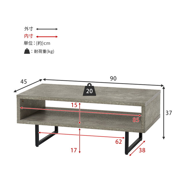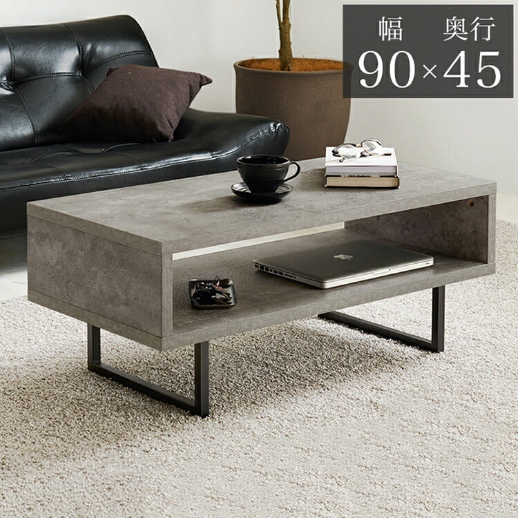 コンクリート調 センターテーブル 90×45 スチール脚 収納 棚付き リビングテーブル ソファテーブル コンクリート柄 セラミック柄 グレー モノトーン おしゃれ(代引不可)