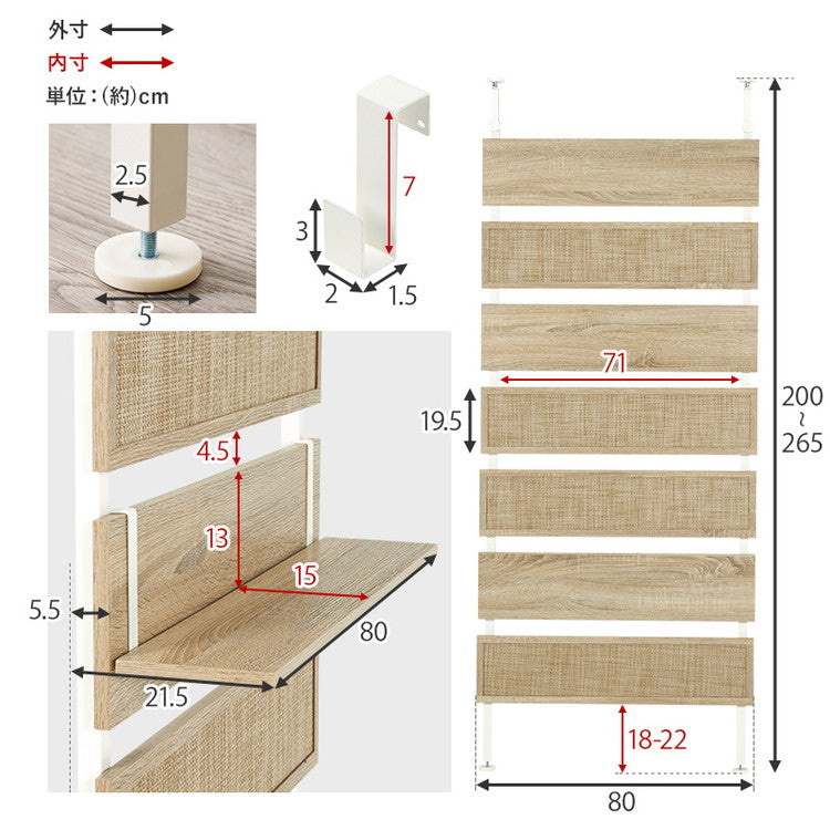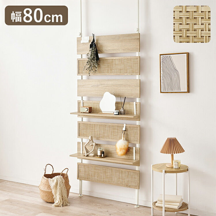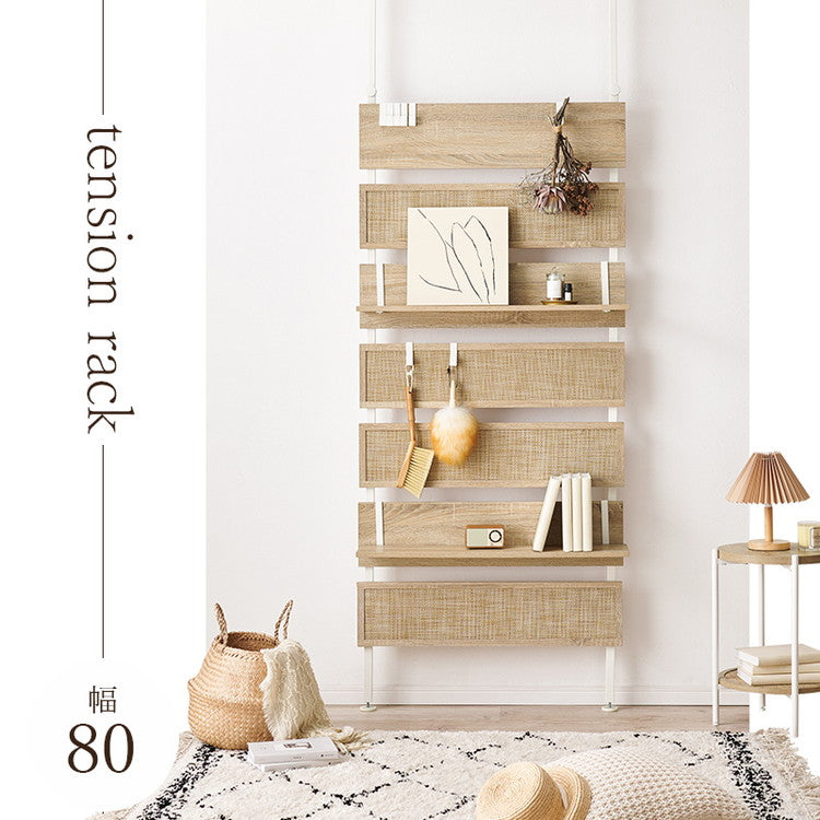 ラタン調 突っ張り棚 幅80 つっぱり ラック おしゃれ 突張り 収納 棚 パーテーション 間仕切り ウォールシェルフ 壁 引っ掛け 引掛け 高さ調整 調節 段差 伸縮 木製 壁面収納 韓国インテリア(代引不可)