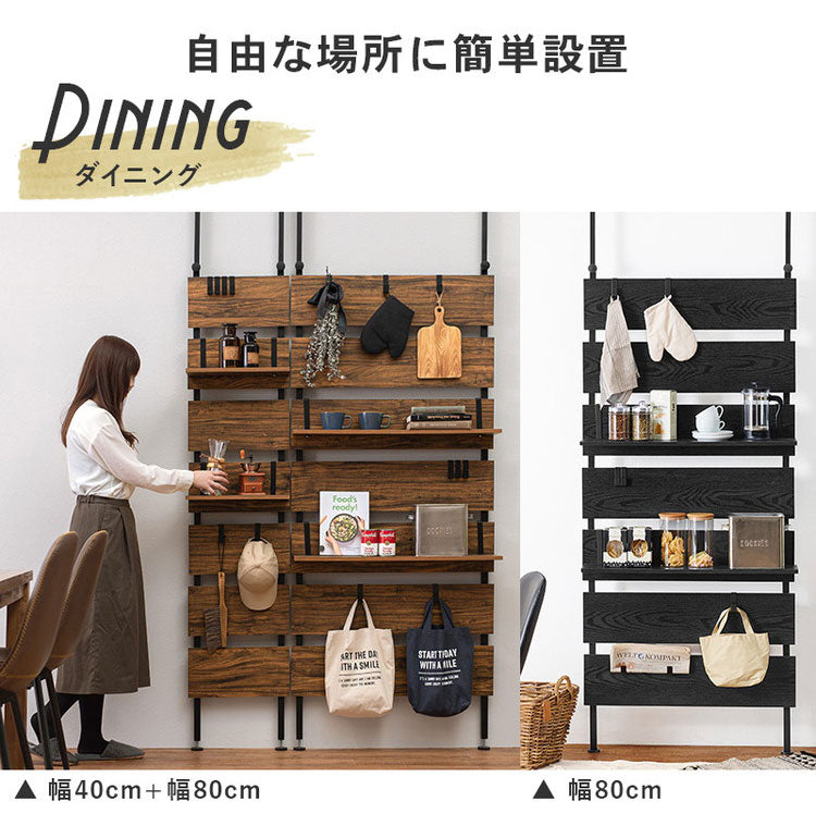お部屋のいろいろな場所に設置できる突っ張り式ラック。パーテーションや間仕切りとしても活躍します。